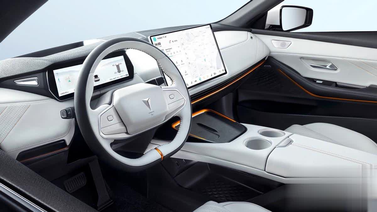进入车内,2025款深蓝SL03增添了星闪黑的内饰配色,同时,车内大量运用类Alcantara的材质,再搭配上双辐式多功能方向盘,视觉效果更加年轻化、个性化。