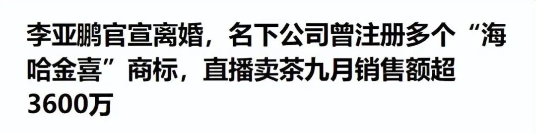 10 月 14 日东方财通,李亚鹏与海哈金喜正式官宣离异。