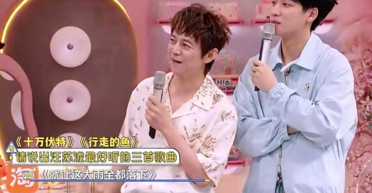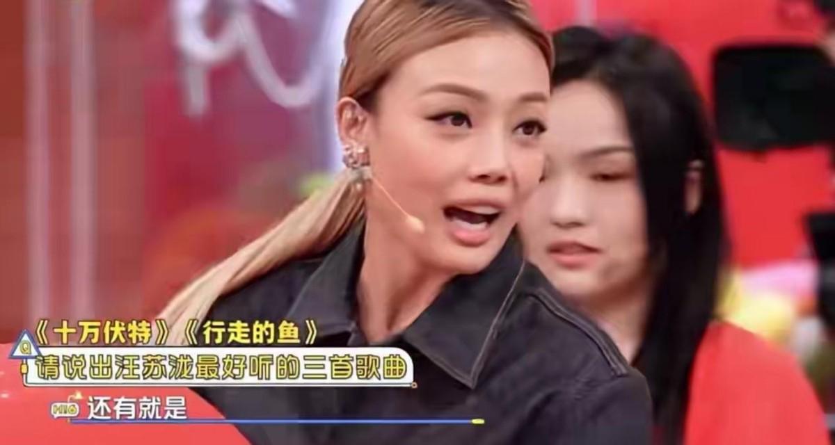 玩游戏时,容祖儿被问到汪苏泷最好听的三首作品,她先是说了《十万伏特》,又说了《行走的鱼》。