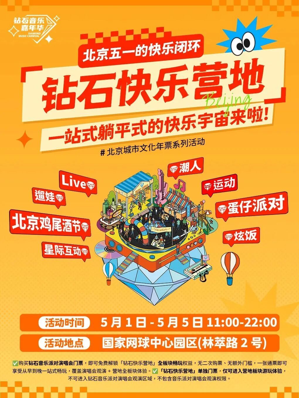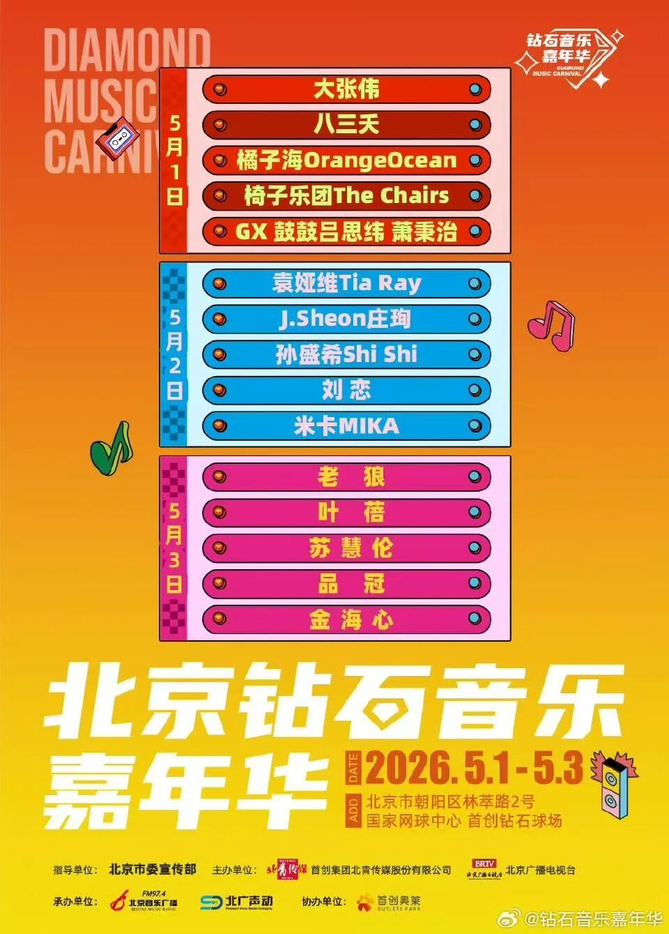 五一假期狂欢值即将拉满!市区地铁直达的超级音乐盛宴来啦🔥2026北京钻石音乐嘉年华承包你整个五一的快乐~王炸阵容暴击!连续3天钻石音乐派对,嗨到腿软!蹦迪、合唱,把所有不开心全甩掉;天籁嗓音裹着晚风,氛围感直接拉满;老歌一响,全场大合唱泪目预定!