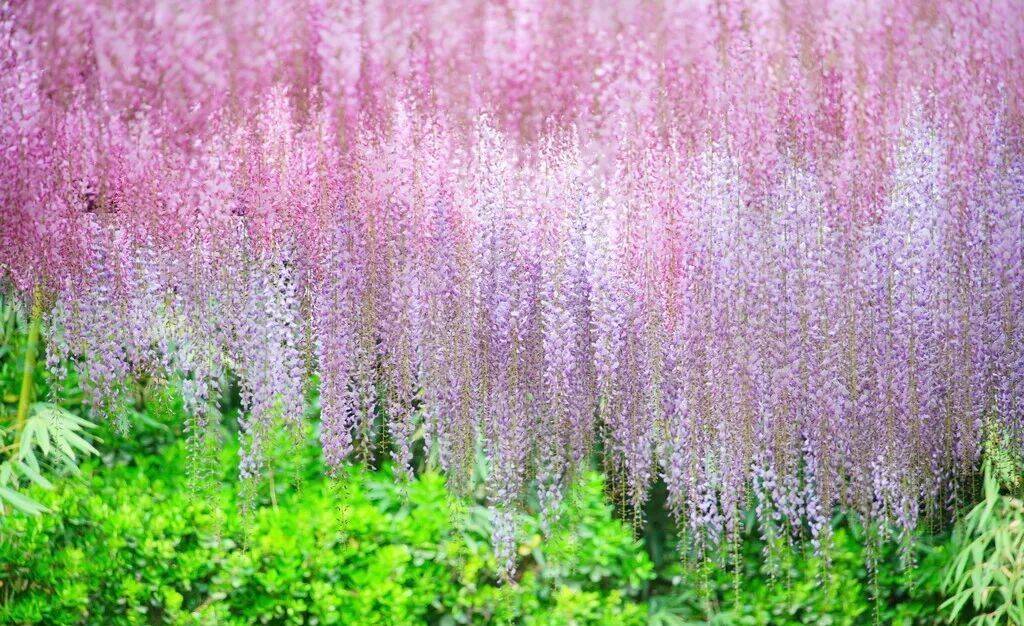 园内200余株、15个品种的多花紫藤正值最佳观赏期,市民游客可欣赏到紫藤花开如瀑的壮丽景象。西北部的科普广场是核心观赏区,花穗自然下垂,最长可达一米,搭配同期盛开的鸢尾更显美观;东南部的玉渊春秋景区以藤架长廊为主,适合漫步穿行;南部的樱珞花谷景区结合园路和地形,以廊架和树状相结合的方式展示。紫藤观赏期预计持续到4月底。